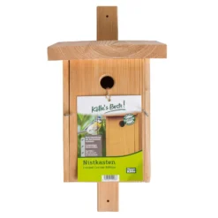 Der Kölle’s Beste Nistkasten Limited Caritas Edition bietet eine wertvolle Nisthilfe für viele Wildvögel. Das Nistkästchen ist entsprechend den Empfehlungen des Naturschutzbundes aus hochwertigem und extrem witterungsbeständigem Lärchenholz in reiner Handarbeit in den Caritas-Einrichtungen Oranienburg hergestellt.