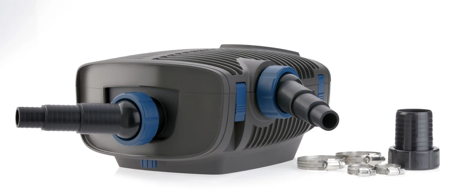 Überzeugt hinsichtlich Design und Stromersparnis: Die Filter- und Bachlaufpumpe AquaMax Eco Premium 12000 arbeitet noch effizienter und energiebewusster als ihr Vorgänger. Mit einem Stromverbrauch von nur 110 Watt verbraucht sie deutlich weniger Energie, fördert aber weiterhin mit 12000 l/h kraftvoll bis 11 mm große Schmutzpartikel. Auch der zweite, patentierte Eingang ist leistungsstark und wirkungsvoll. An diesem patentierten Eingang kann optionales Teichzubehör angeschlossen werden, so wird der Schmutz gleichzeitig genau dort entfernt, wo er sich befindet: am Teichboden, am Teichrand und an der Oberfläche.