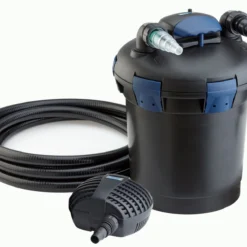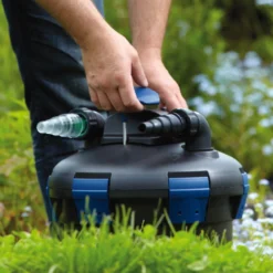 Mit dem BioPress Set 6000 Druckfilterset mit UVC und Filterpumpe steht kristallklarem Teichwasser nichts mehr im Weg – einsetzen, fertig, los. Das Komplett-Druckfilterset BioPress Set 6000 ist mit optimalen Start-Up Eigenschaften ausgestattet. Dank der perfekten Abstimmung zwischen der 2500 l/h Filterpumpe, des Druckfilters und des darin integrierten 9 Watt UVC-Vorklärgerätes werden Teiche bis 6 m³ (bei Fischen bis 3 m³) ermöglicht klar. Selbst höher gelegene Bachläufe werden problemlos mit Wasser versorgt. Mit dem ebenfalls im Set enthaltenen 5 m Schlauch ist das Komplett-Set schnell und unkompliziert angeschlossen.